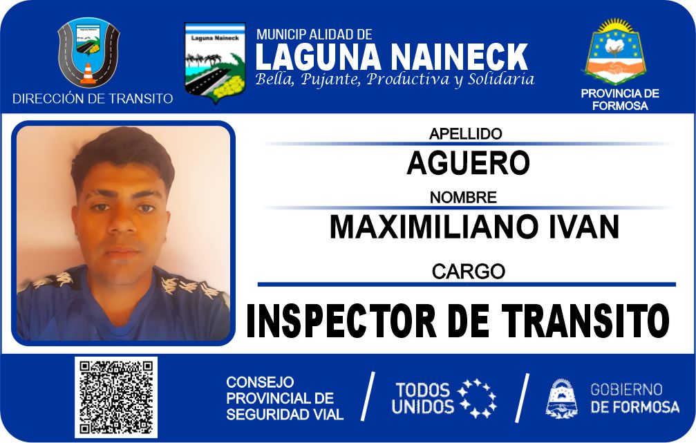 La presente credencial esta verificado y autorizado por el Departamento de Transito de la Municipalidad de Laguna Naineck.